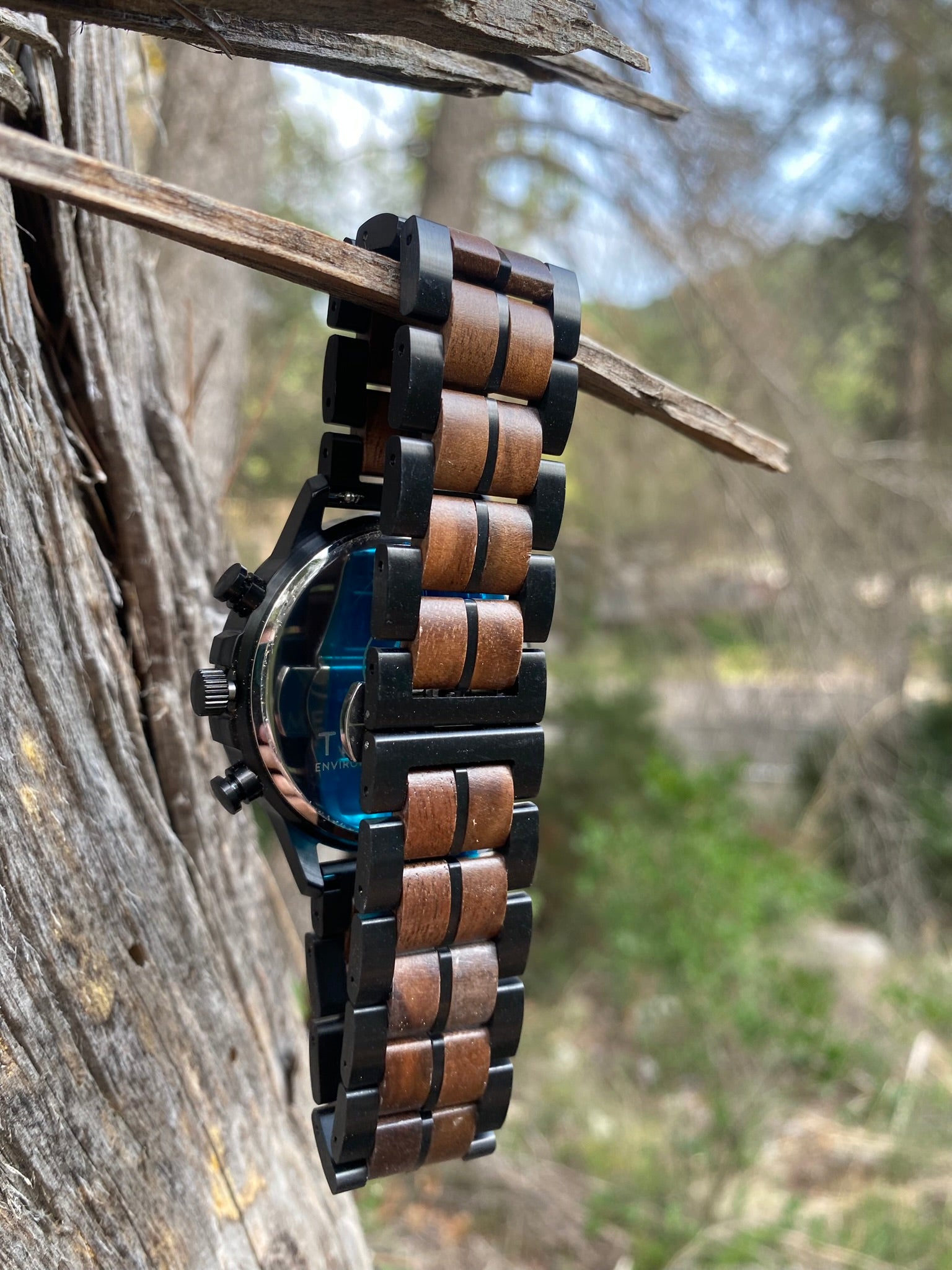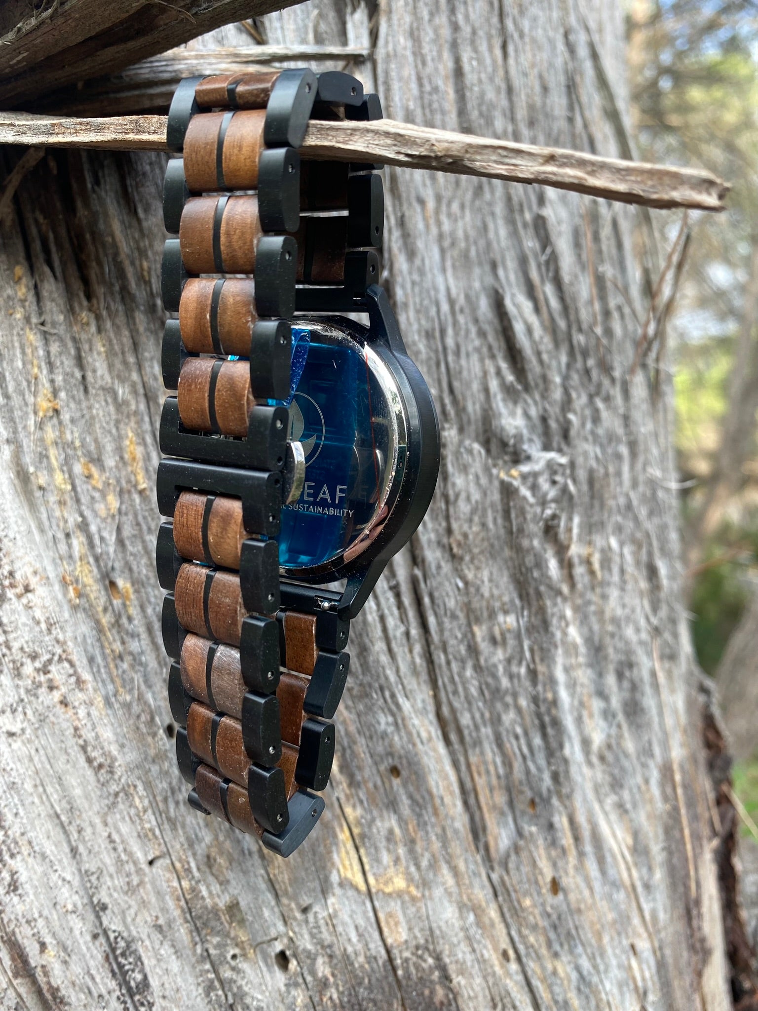 - Strap Material: Recycled Dark Oak & Deep Ebony