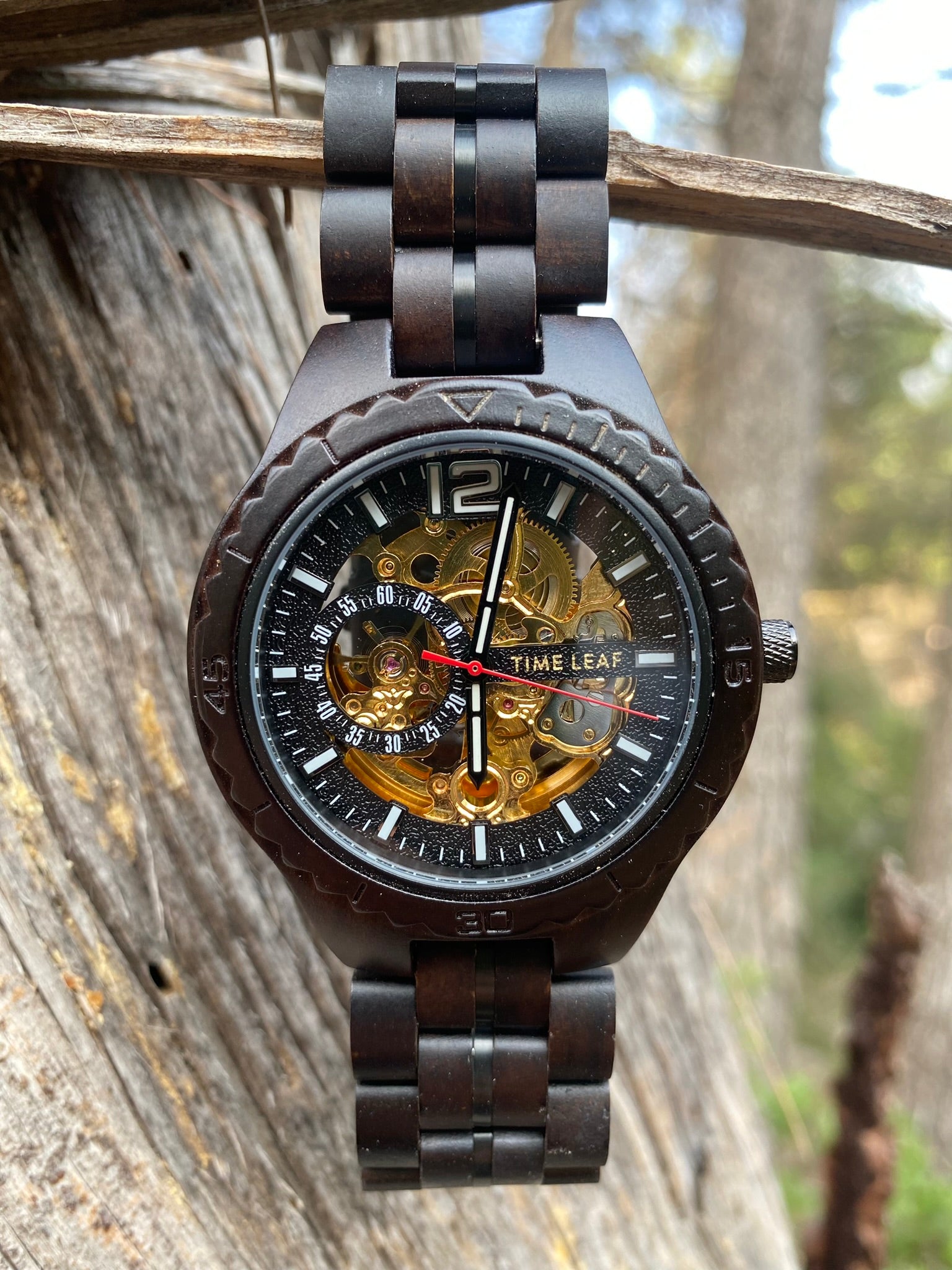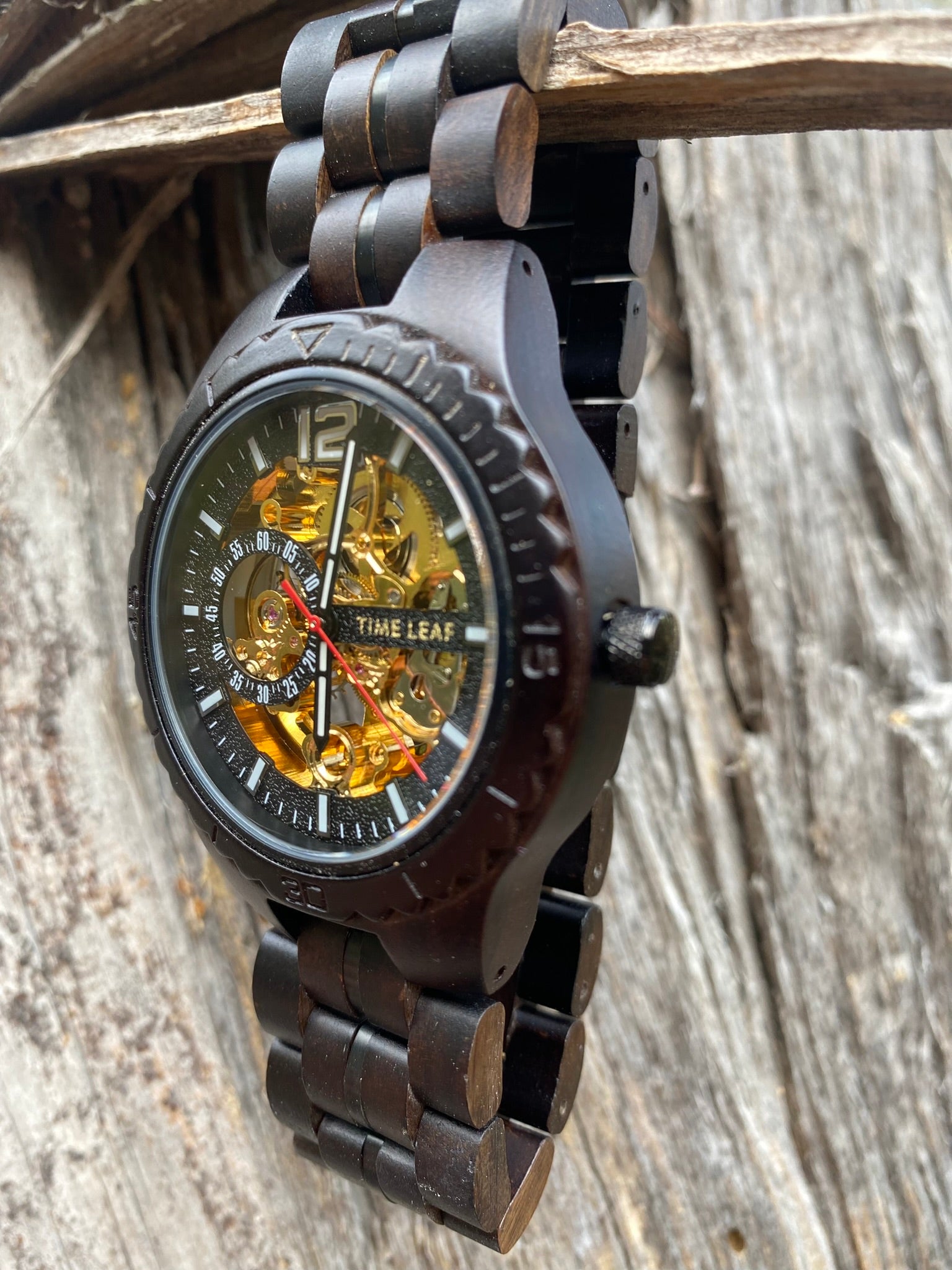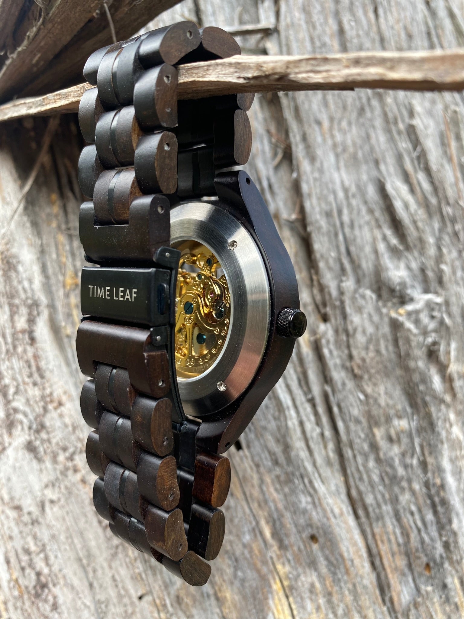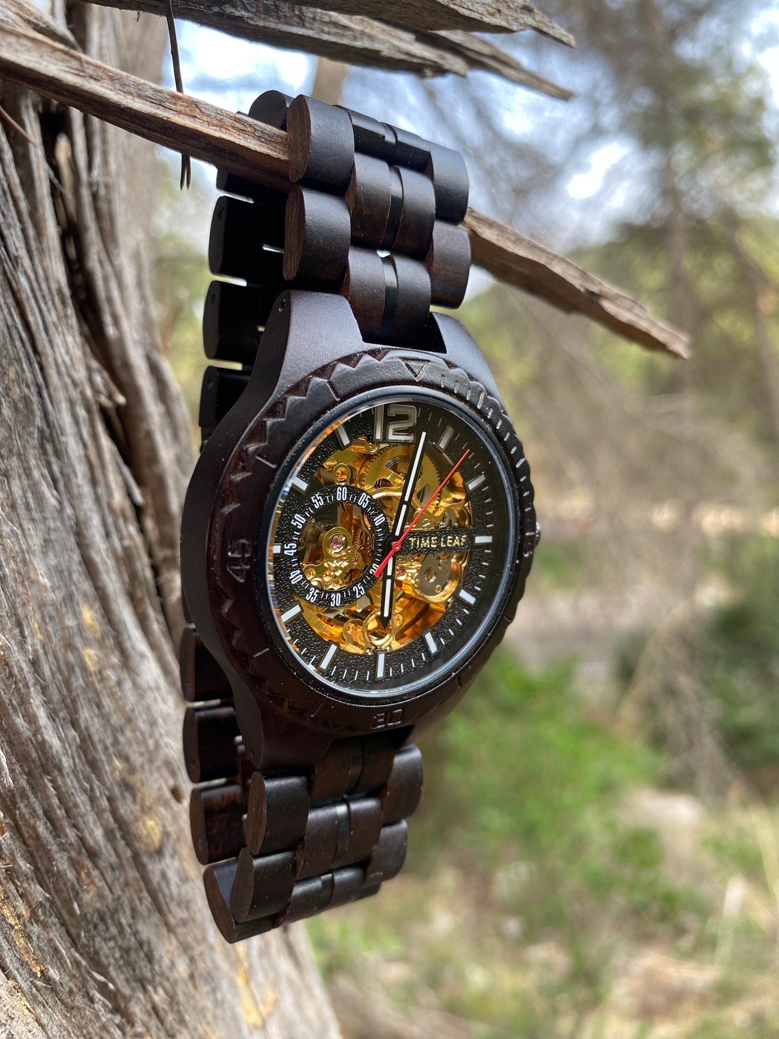 Automatic watch made of natural wood and titanium, combining elegance and durability. Minimalist, handcrafted, and sustainable design, ideal for those seeking style and a connection with nature.